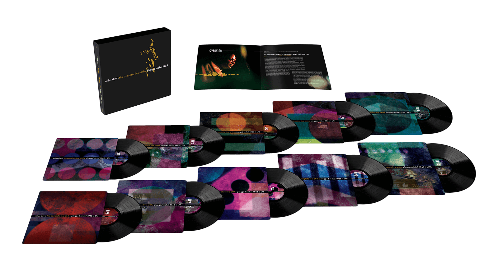 The most requested Miles Davis reissue arrives for his centennial in spectacular style. What began as a holiday residency at Chicago's Plugged Nickel Café became the crucible where the Second Great Quintet forged its identity. Miles, Wayne Shorter, Herbie Hancock, Ron Carter, and Tony Williams delivered a masterclass in risk and invention, dismantling familiar tunes and rebuilding them on the fly. Producer Teo Macero captured every note across seven sets on December 22 and 23, 1965. Portions trickled out in the '70s and '80s, but only in the early '90s did Legacy (CD) and Mosaic (LP) reveal the full scope of seven and half hours of revelatory music-instantly hailed as one of the greatest live jazz recordings ever, earning the Penguin Jazz Guide's coveted 'Crown,' and becoming pricey, secondary-market rarities. Now, 30 years later and six decades after the shows themselves, veteran fans finally get the repress they've demanded, and new fans get a chance to own one of the most mythologized live engagements in jazz history. This new 10LP edition mirrors the original sequence, cut from the high-res Mosaic masters and pressed on 140-gram black vinyl. Each LP comes in its own newly designed jacket, housed in a gold foil-embossed slipcase box. The 44 page 12'x12' Smyth Sewn book includes rare Plugged Nickel photos and extensive new liner notes and track-by-track commentary by Syd Schwartz alongside Bob Blumenthal's original essay.