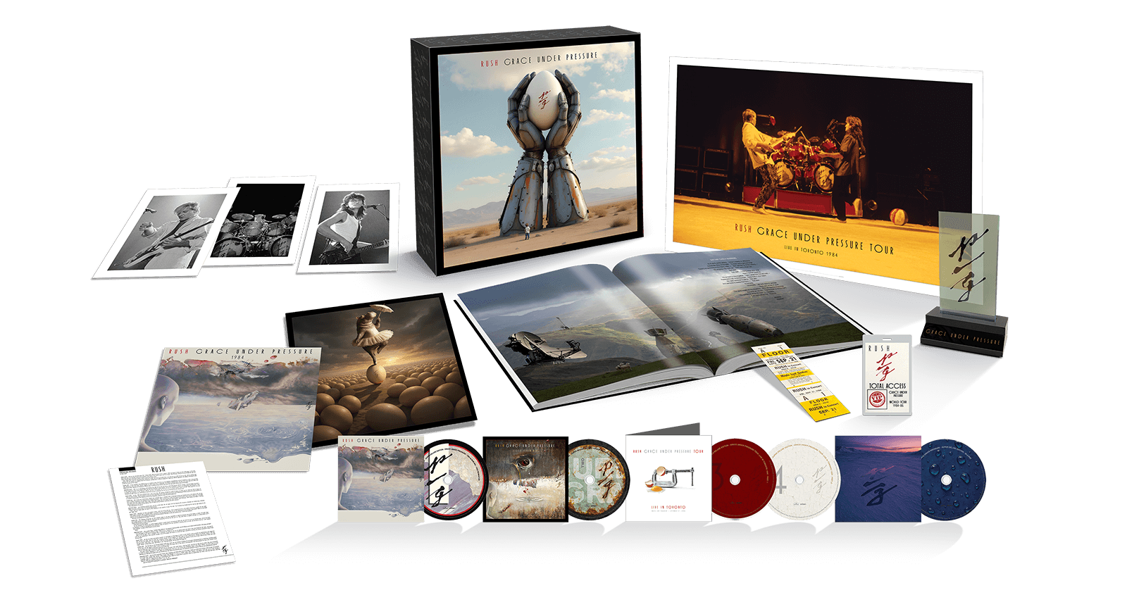 Newly titled Grace Under Pressure Tour: Live in Toronto 1984, the complete live album is experienced on CDs 3 & 4 with the concert video newly remastered in HD and offered in Dolby Atmos, 5.1 surround and stereo newly mixed by Terry Brown on the Blu-ray.