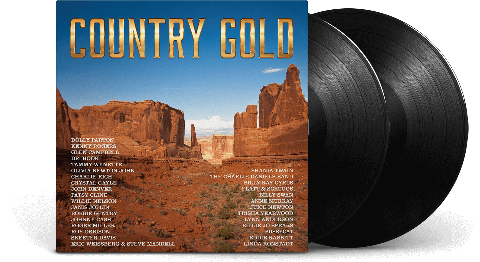 Featuring 34 of Country music's finest hits on a 2LP set. Kicking off with the legendary duet 'Islands In The Stream' from Dolly Parton & Kenny Rogers, the first side also features #1s from Dr Hook, Tammy Wynette and John Denver alongside Glen Campbell, Olivia Newton-John and the timeless 'Don't It Make My Brown Eyes Blue' from Crystal Gayle. Flip the LP over for classics including 'Crazy', 'Always On My Mind' and 'Ode To Billy Joe' - along with Country standards from Roy Orbison, Johnny Cash and Janis Joplin... while LP2 opens with a run of irresistible upbeat smashes: Shania Twain's 'Man! I Feel Like A Woman', Billy Ray Cyrus with 'Achy Breaky Heart' and the all-time favourite 'The Devil Went Down To Georgia' by The Charlie Daniels Band, ahead of stunning ballads from Juice Newton and Trisha Yearwood... and over on the final side, a stunning line-up of peerless country-pop: John Denver and Dolly Parton make second appearances, plus gems from Lynn Anderson, Billie Jo Spears and Eddie Rabbitt before bowing out with Linda Ronstadt's incredible version of 'Desperado'. For fans of all great music - an essential addition to your vinyl collection: 'Country Gold'.