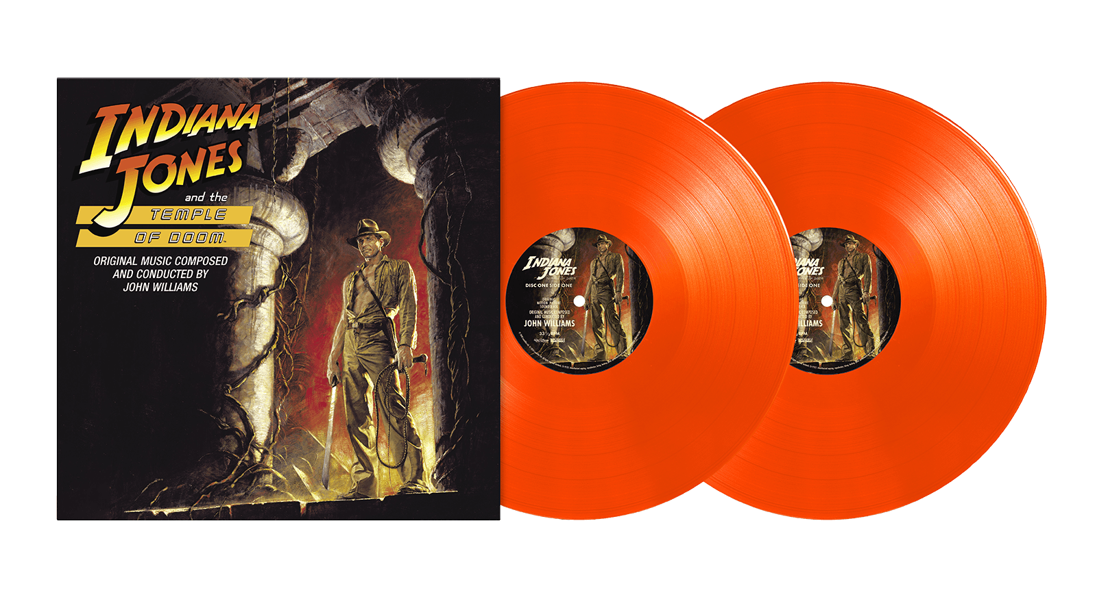 Indiana Jones and the Temple of Doom original motion picture soundtrack, now available on orange vinyl, featuring original music composed and conducted by John Williams.