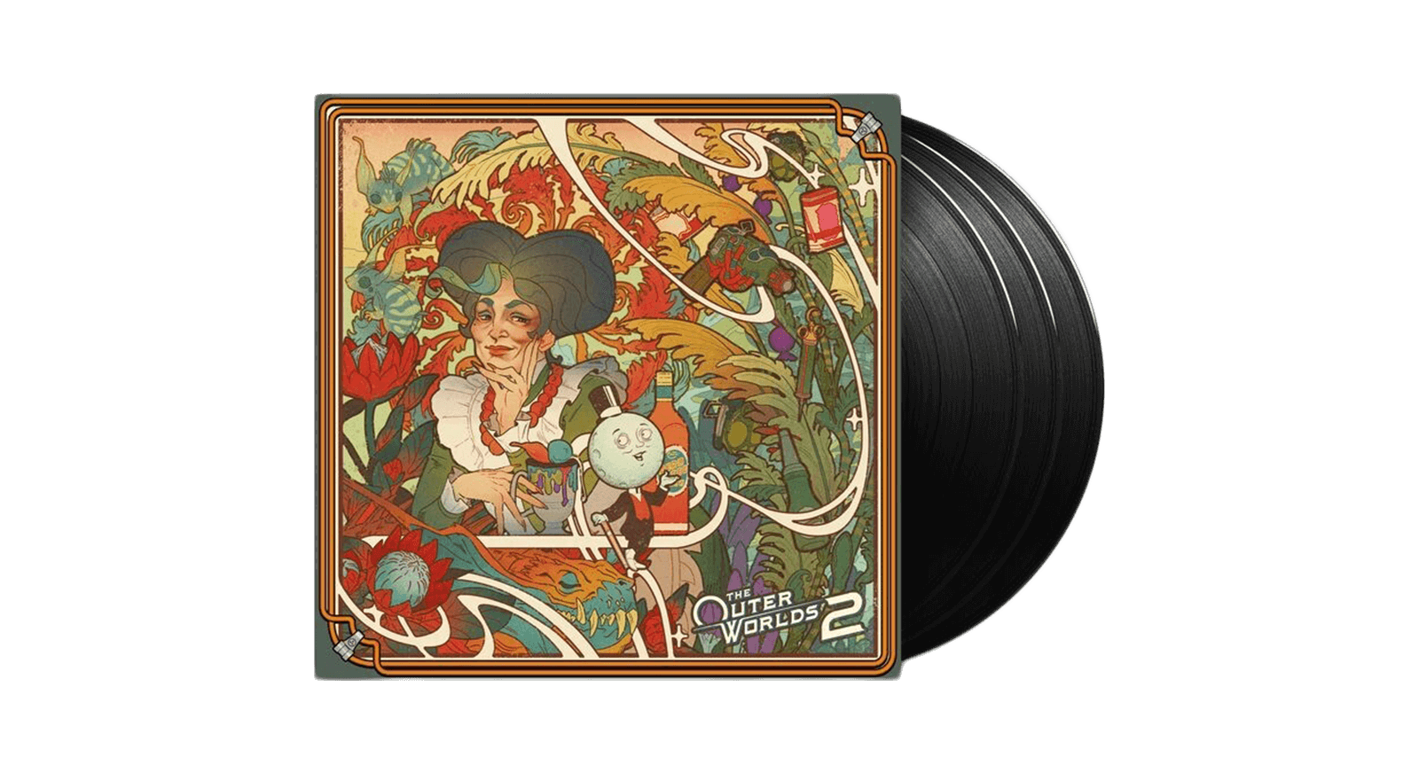 Obsidian Entertainment, Xbox, and Laced Records present the official vinyl release of The Outer Worlds 2 Original Soundtrack, a sanctioned audio record of Arcadia's most influential systems, ideologies, and approved listening experiences. The specially mastered tracks span three LPs presented in deluxe Art Nouveau-inspired packaging. The collection captures daily life in the colony-where progress is monitored accordingly, optimism is responsibly distributed, and deviation is resolved through established channels. Volume 001: Truth, Justice, and Dispute Resolution introduces the sound of arrival of the Earth Directorate. Sweeping orchestral themes and restrained electronic textures underscore exploration, investigation, and the reassuring sense that Arcadia's instability is both anticipated and accounted for. Volume 002: Wireless Free Arcadia represents Auntie's Choice at peak efficiency. Bright melodies, big band swing, and relentlessly cheerful compositions promote comfort, productivity, and sustained consumer confidence. Freedom is included. Continued satisfaction indicates proper use. Volume 003: Mental Enlightenment and Refreshment pairs the Protectorate and the Order of the Ascendant. The Protectorate asserts control through ceremonial authority, rigid rhythms, and formal arrangements devoted to discipline, doctrine, and public order. The Order of the Ascendant follows with colder, more abstract compositions focused on empirical certainty, controlled experimentation, and outcomes unburdened by sentiment. Composed by Oleksa Lozowchuk, Antonio Gradanti, and Jim Bonney, the soundtrack of The Outer Worlds 2 blends cinematic scoring, period-inspired styles, and sanctioned cultural messaging to reflect a colony guided by ambition-and the systems entrusted to manage it.