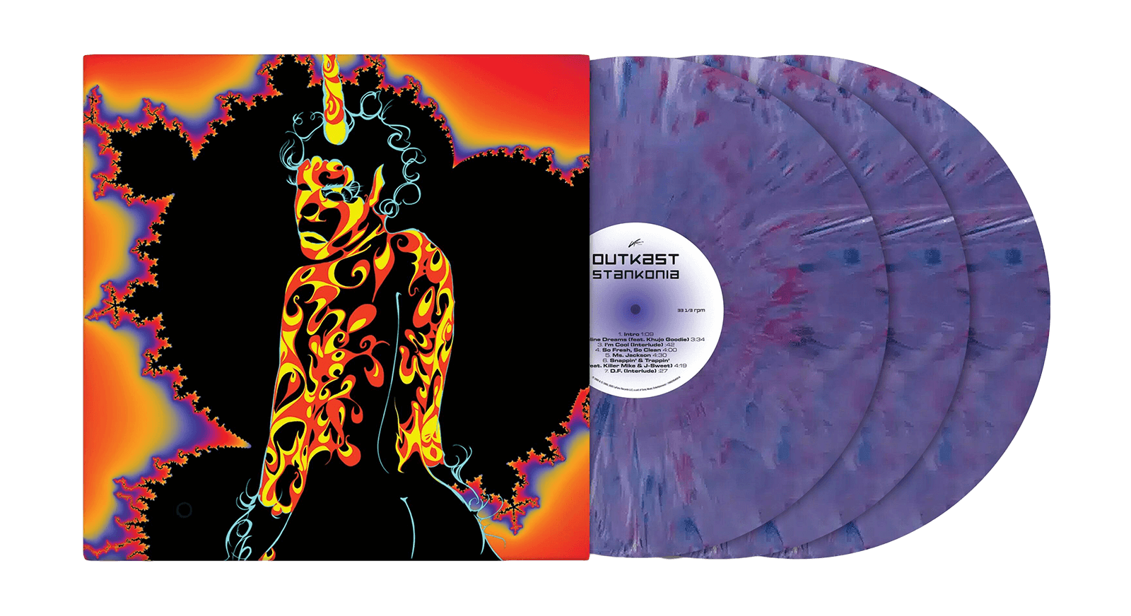 Celebrate 25 years of Outkast's iconic album, 'Stankonia', with this expanded 3LP set pressed on eye-catching purple marble vinyl. This collector's edition includes exclusive bonus tracks, unreleased photos, and cover art by André 3000, as well as a glow-in-the-dark flag insert.